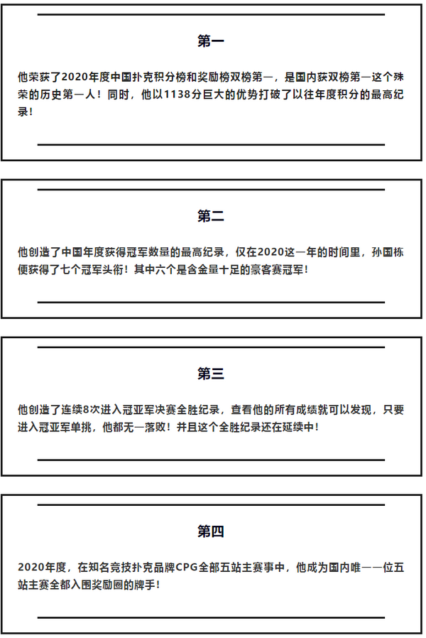 他,就是2020年度中国扑克榜双榜排名第一的职业扑克竞技运动员——孙国栋!
