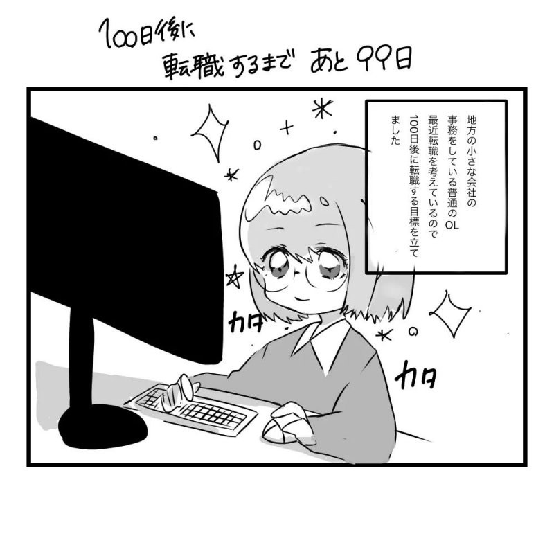 在社交账户建立的3月4日当天,花狩舞就开始在社交账户上连载起了《100日后に転职するOL(100天后换工作的OL)》,这个漫画以倒计时的方式讲述了地方小公司的普通OL给自己限期100天完成转职。
