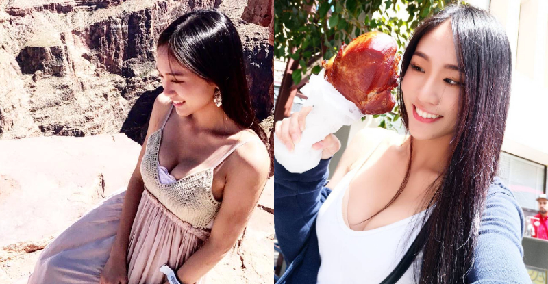 張雅淳最引人注目的還是那對渾圓的白皙嫩乳,她到美國旅遊時,穿著一件爆乳洋裝,長長一條乳溝無盡頭,感覺在跟美國知名景點大峽谷比誰比較深,我這個人很簡單,就選奶大的。