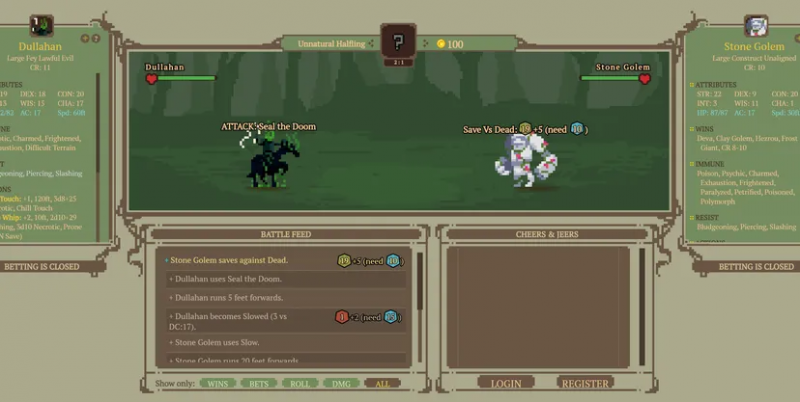 Goblin Bet遵循网页游戏“Salty Bet”风格的模式,即互联网上的观众对某些活动(在本例中为 D&D 怪物战斗)下注假装金钱。当然,D&D怪物的数量就这么多。如何让相同的两个一般物种之间的战斗变得有趣?