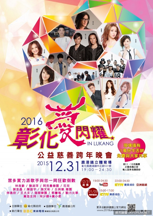 跨年總少不了煙火秀及跨年演唱會,但是不想人擠人的話就會選擇窩在家裡,可是遇到沒有電視時就傷透腦筋,到餐廳去跟大家搶電視,每個人想要看的明星又不一樣,這時候在自己的電腦上看就很方便了,這邊幫大家整理全台跨年演唱會的懶人包,讓你輕鬆跨年。【2015/12/29 更新內容】