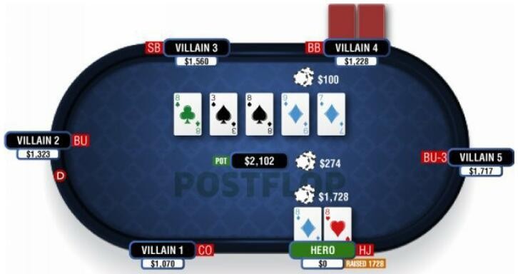 这类翻牌面极少见,而且不难游戏。你永远不会考虑弃牌这个选择,因此整个翻后体验都是关于如何让对手的筹码投入底池。