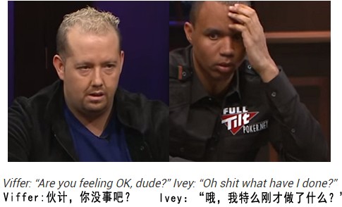 我不确定Ivey希望看到Viffer拿着什么牌。他可以打败一些未完成的顺子听牌和同花听牌,但我想大多数这些牌会在转牌圈下注。我只能猜测他看错了自己的底牌,这是唯一能解释的原因!