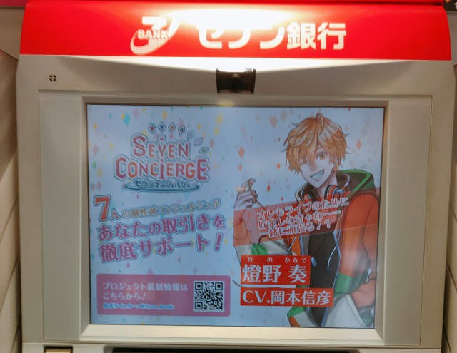 这从ATM机身到操作画面全被二次元型男角色占领的ATM,是セブン银行(Seven Bank)和专门制作插画、漫画的フーモア(whomor)所合作的企划“SEVEN CONCIERGE”。