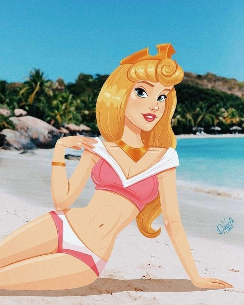 所以Daria也以公主穿上泳装的主题绘制了一系列的图片,都是以公主们本身的服装修改设计成泳装的模样!所以跟先前分享的美国品牌 Enchanted Bikinis 所设计的《迪士尼公主泳装》有一点点类似,一起来欣赏一下这些作品吧!