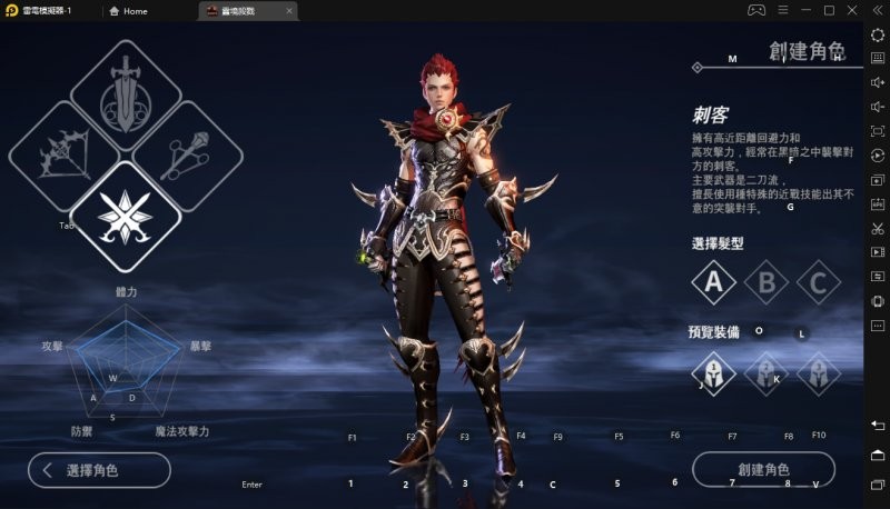 刺客:近距离高伤害爆发角色,有自身强化能力,能增加伤害和生存能力,特别是透过回避在一定条件下还能短暂当成肉盾操作。而且技能中有不少削弱和牵制敌人的能力,还有出血等持续输出伤害,而且出血技能如果搭配对方身上的中毒(神射手的"毒箭"),还能额外附加沉默效果,这在PVP时非常有效,能让刺客加神射手成为场上最有机会秒杀敌人的可怕组合。