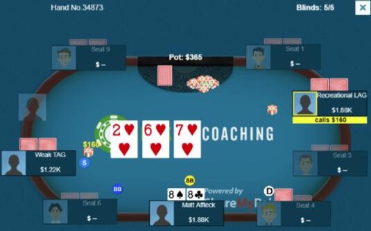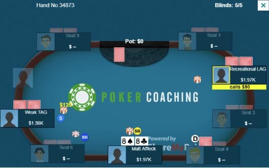 1.翻前,前面玩家弃牌,劫位玩家(松凶的休闲玩家)率先加注到30美元,其他玩家弃牌,你在小盲位置发到了8♠ 8♣。你会怎么做?