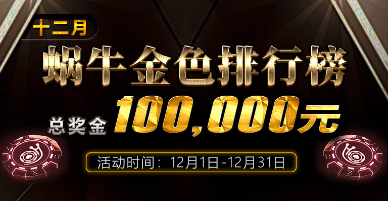 蜗牛扑克十二月月金色排行榜总奖金100000元